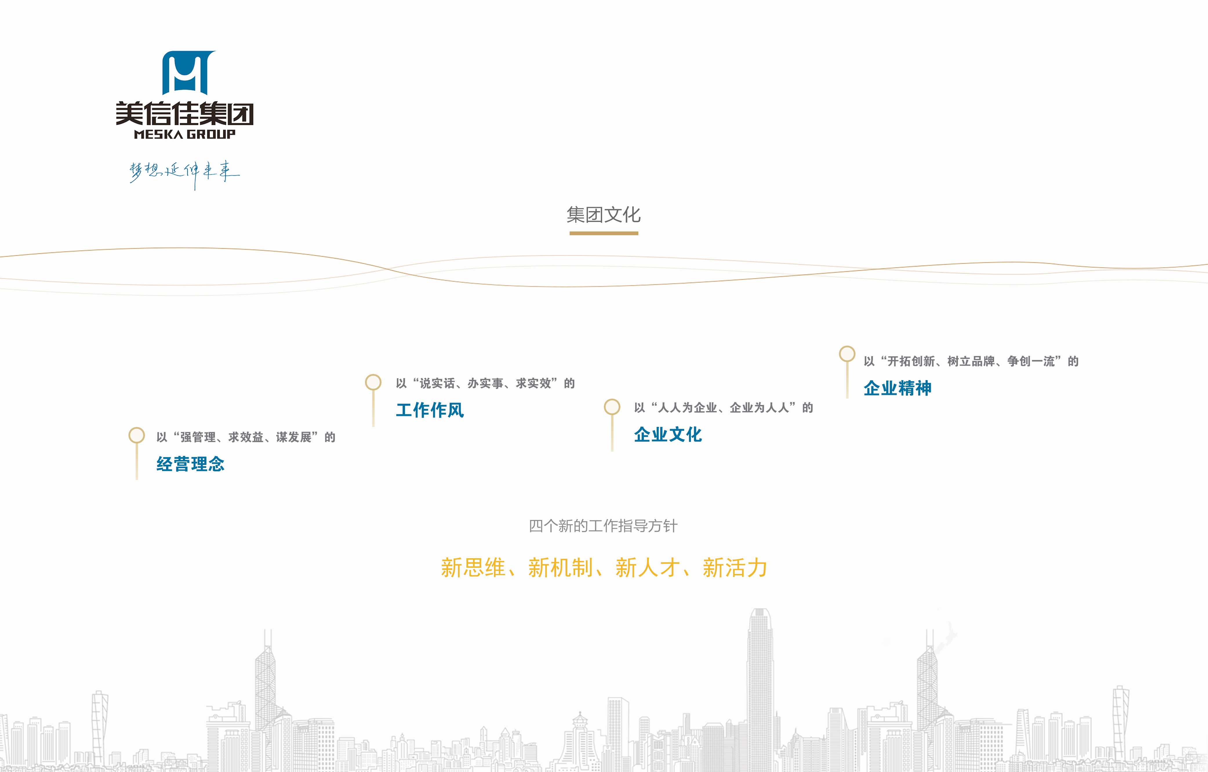 | 公司始創(chuàng)于1994年,時(shí)稱湖州市美的建筑裝飾總公司,2010年成立美信佳集團(tuán)有限公司。歷時(shí)多年的創(chuàng)新發(fā)展,美信佳集團(tuán)從建筑裝飾、房地產(chǎn)到貿(mào)易、金融再到化工、制藥,現(xiàn)在已發(fā)展成為一家跨行業(yè)、多元化的綜合型集團(tuán)。 |
